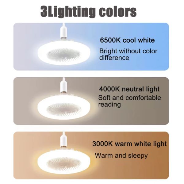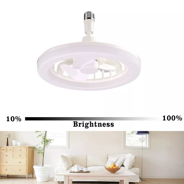 Представяме ви модерен вентилатор за таван с осветително тяло, използващо стандартен цокъл E27 (не е включен в комплекта).