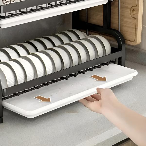 Иновативният многоетажен дизайн ви позволява да сушите чинии, чаши, купи, кухненски съдове и прибори в едно компактно устройство.