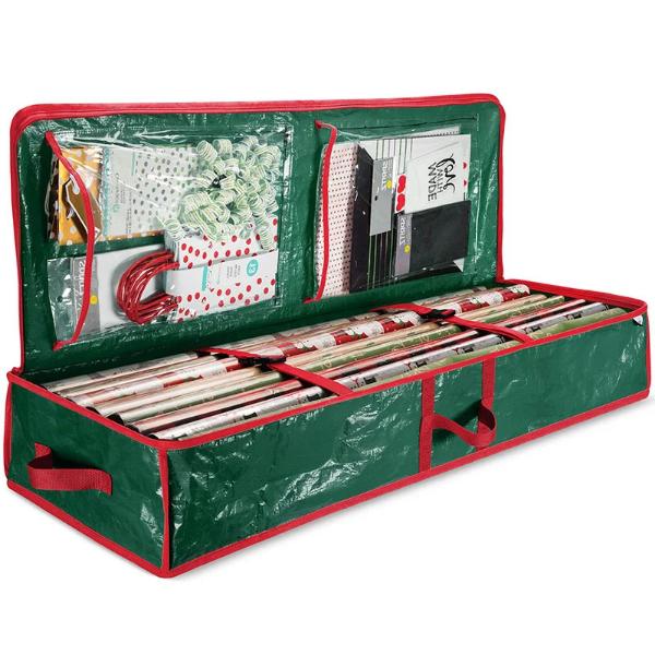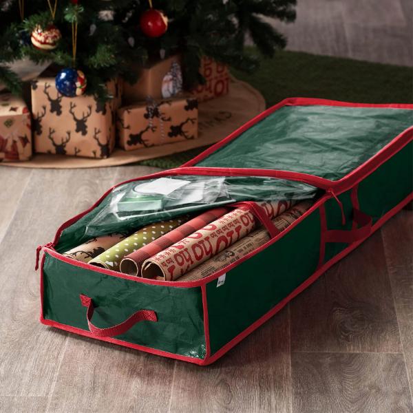 С достатъчно пространство тази чанта съхранява цялата ви празнична опаковъчна хартия, като държи всичко на едно място за лесен достъп по време на натоварените празнични дни.