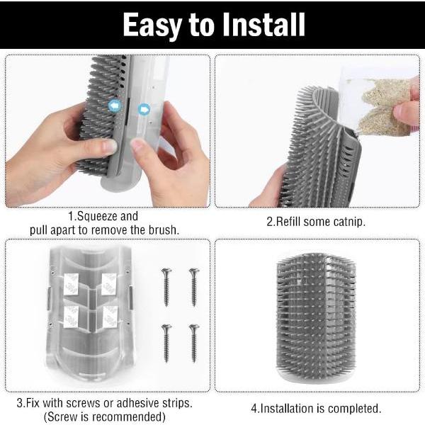 На котките може да им отнеме известно време да се адаптират към тези ъглови четки за котки, а вие можете да засилите интереса им, като добавите щипка котешка трева(не е включена в комплекта).
