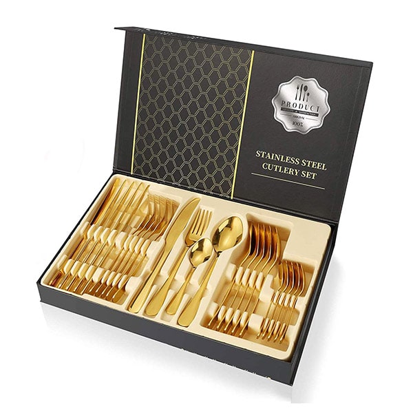 Изработен от първокласни материали, нашият луксозен комплект прибори за хранене обещава издръжливост и дълготрайно представяне.