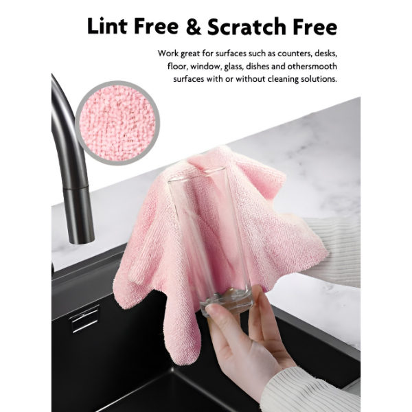 Висококачествената микрофибърна кърпа абсорбира вода, масла, прах и петна, оставяйки повърхностите безупречно чисти и без следи.